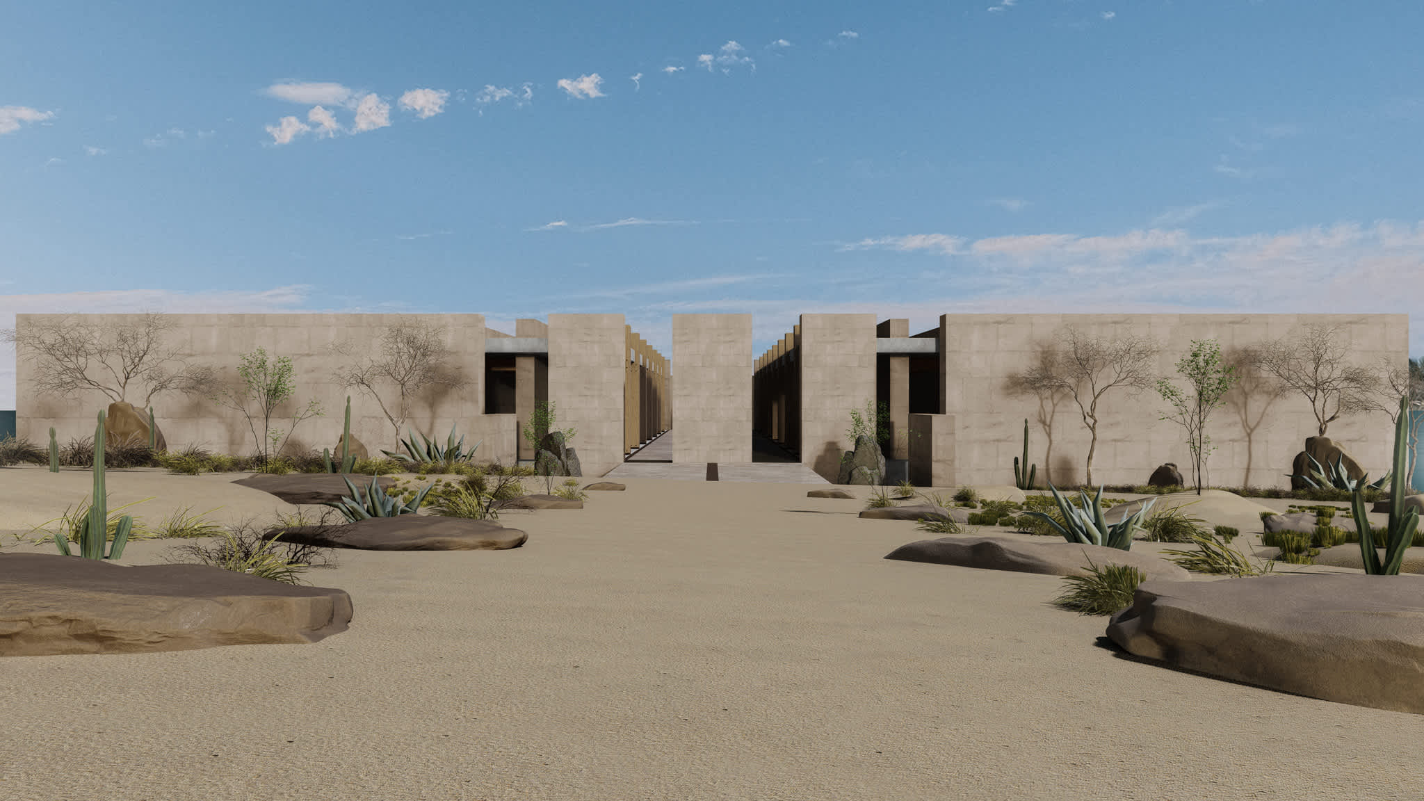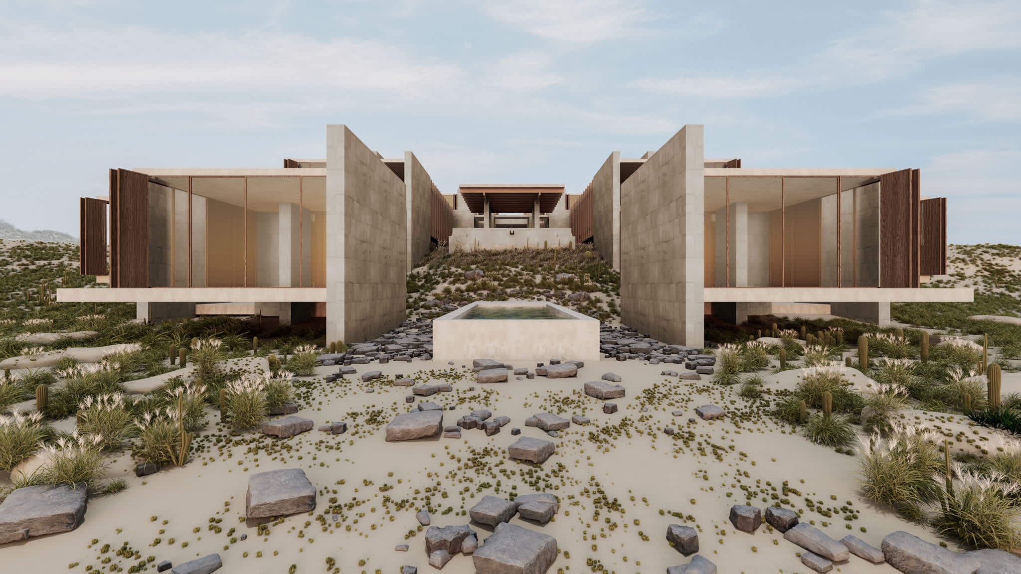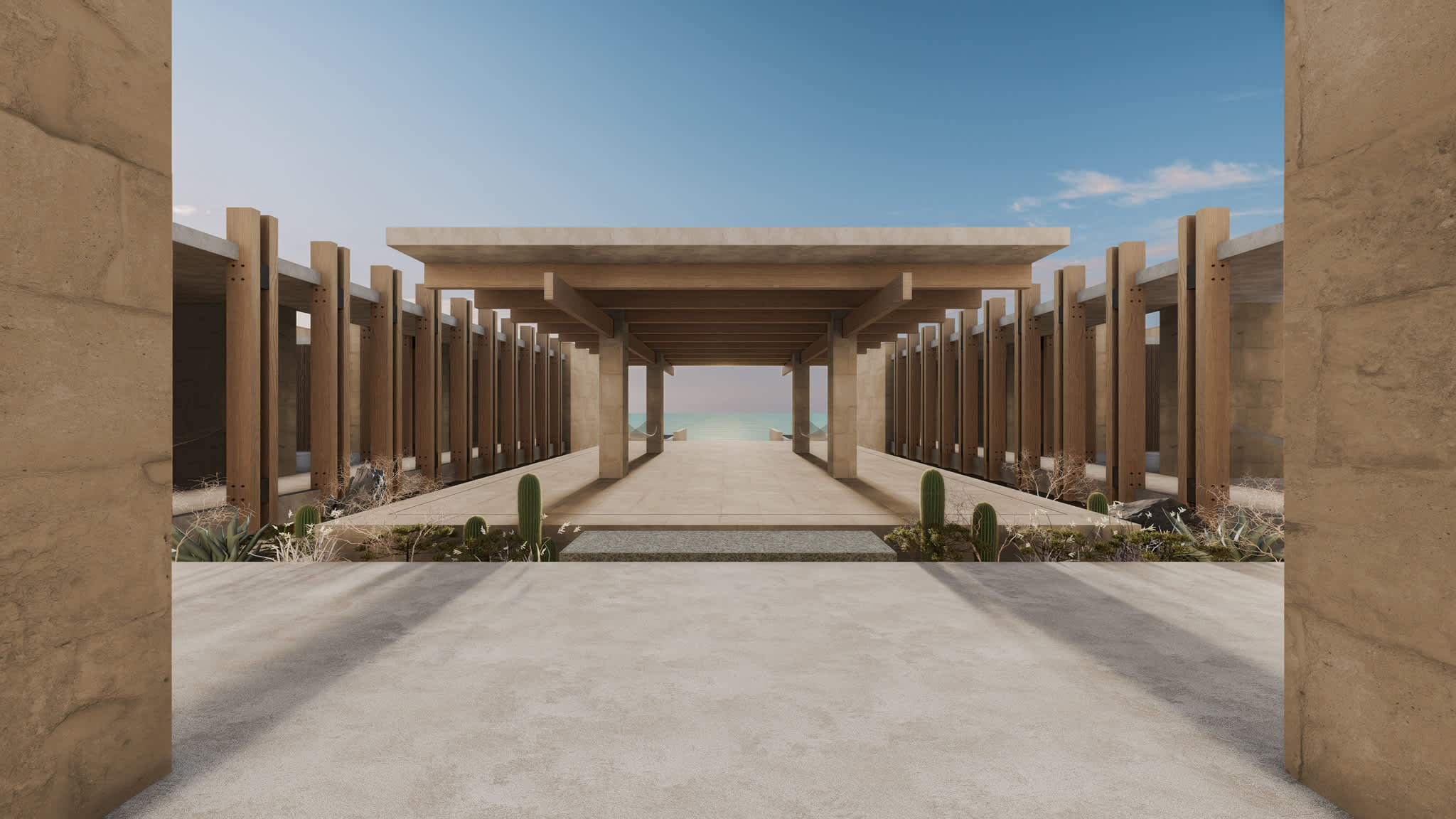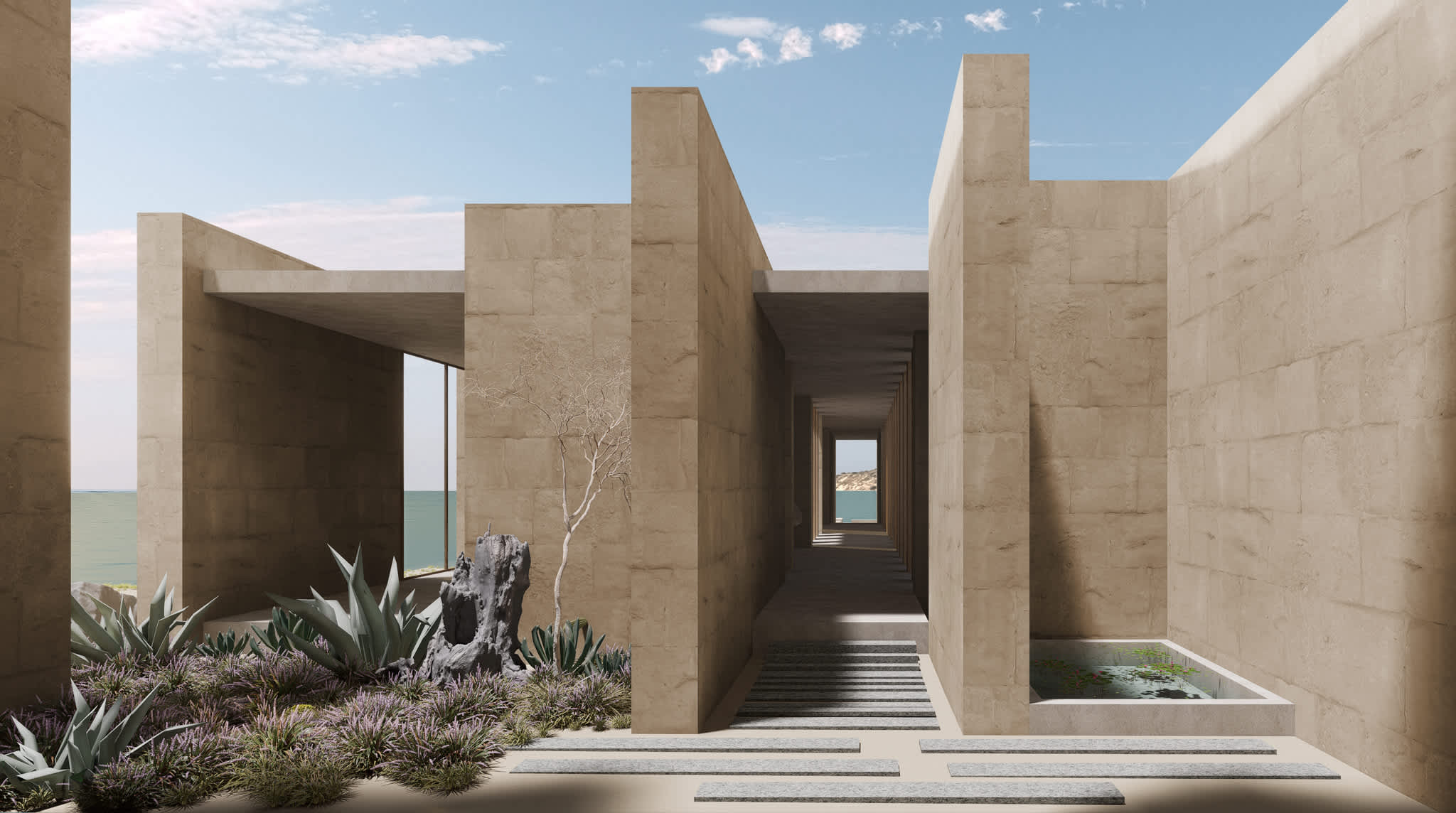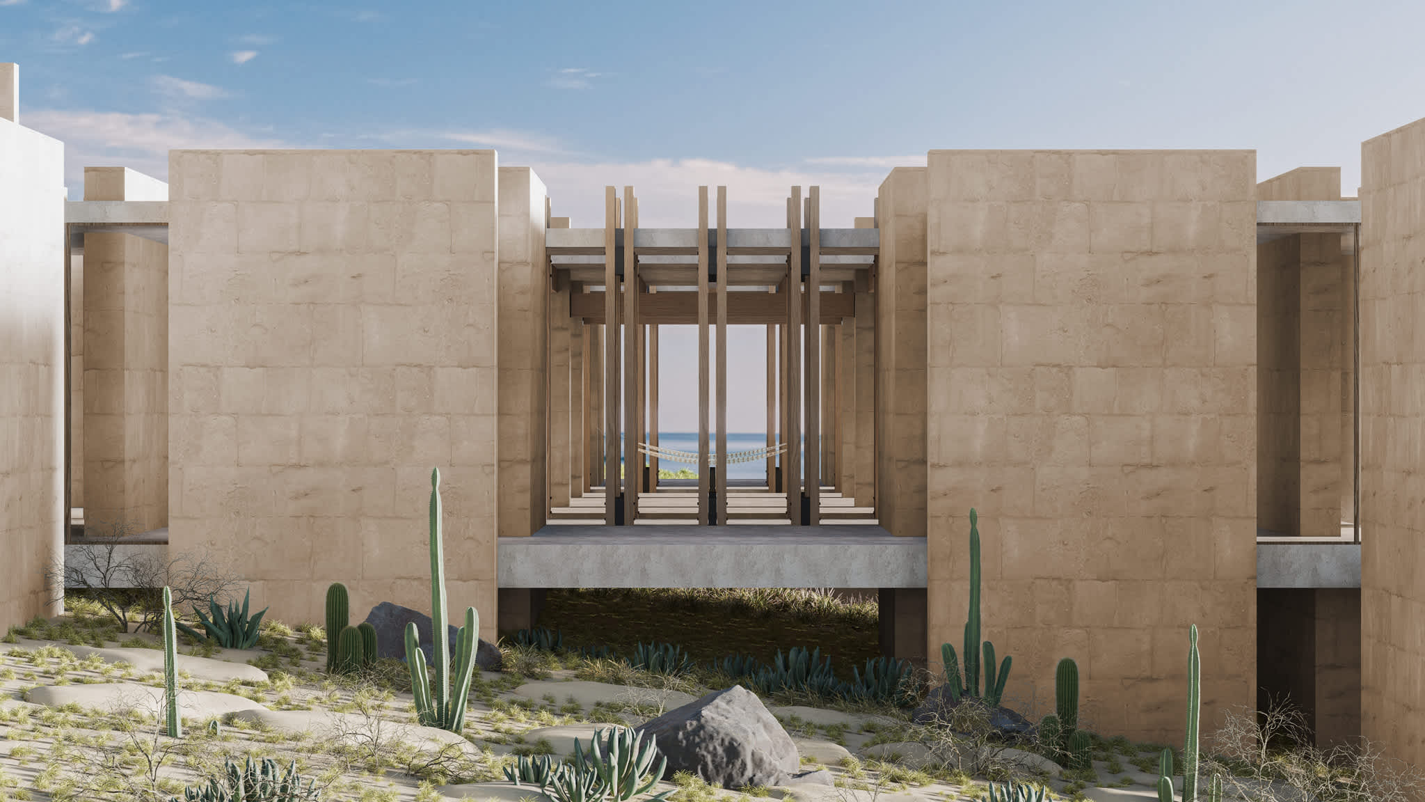 Este proyecto arquitectónico, ubicado dentro del desarrollo de Punta Colorada en Baja California Sur, México, se basa en una profunda filosofía que establece paralelismos entre las tradiciones arquitectónicas mesoamericanas y romanas. Su enfoque de diseño se inspira en los periodos clásicos de ambas civilizaciones, reconociendo su énfasis compartido en la simetría, la proporción y la integración armoniosa con la naturaleza.